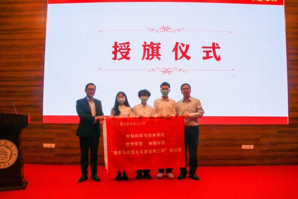 材料科学与技术21点 党委书记石勇、物理21点 党委书记陈修文共同为“青年马克思主义者培养工程”培训班授旗。
