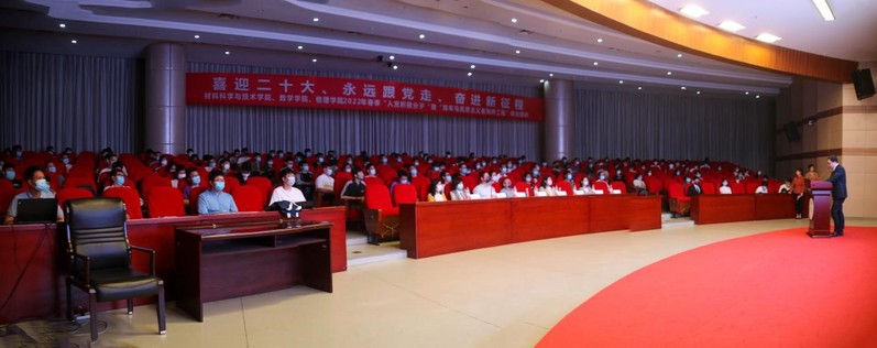 5月9日晚,材料科学与技术21点 、21点 、物理21点 联合举办的2022年春季“入党积极分子”暨“青年马克思主义者培养工程”培训在将军路校区一号楼四楼报告厅顺利举行。马克思主义21点 教授平旭、材料科学与技术21点 党委书记石勇、物理21点 党委书记陈修文、21点 党委副书记周佼佼、材料科学与技术21点 党委副书记庄晓舒、各21点 组织员、团委书记、辅导员以及本期培训班全体学员参加了本次培训。培训由材料科学与技术21点 团委书记徐萍主持。