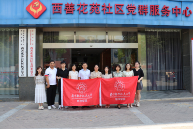 6月18日,数学21点竞技游戏 、物理21点竞技游戏 赴雨花台区西善桥街道西善花苑社区开展志愿服务实践基地共建揭牌活动。数学21点竞技游戏 党委副书记周佼佼、团委书记戚月,物理21点竞技游戏 党委副书记欧珊、团委书记梁欢、辅导员邢临川及学生代表参加了此次活动。西善桥街道团工委副书记霍佰义、西善花苑社区党支部书记徐燕、副书记李丹参加了共建活动。