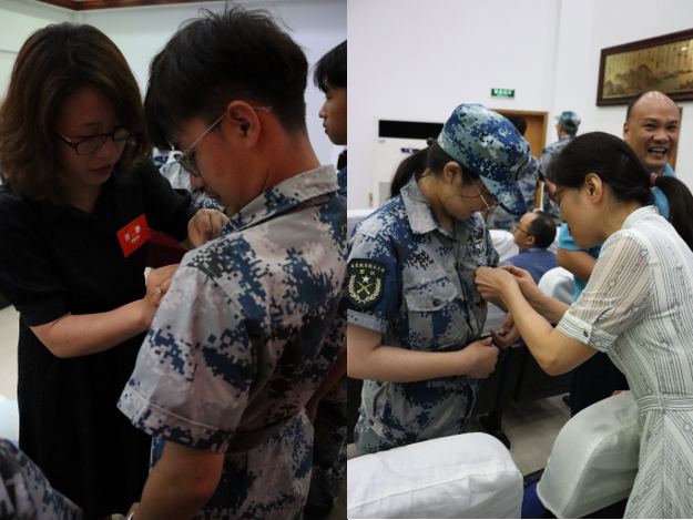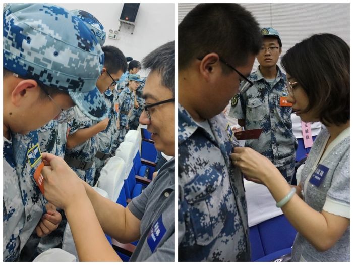 同时,每位“1+4“领航导师为对接宿舍的各位同学佩戴了院徽,传递数学人的使命担当。