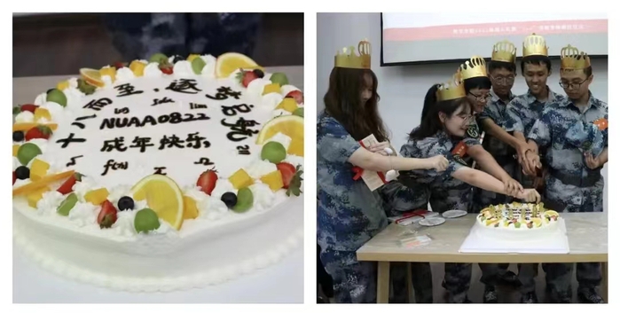 为6名在9月份过18岁生日的同学们准备了生日惊喜。辅导员提前准备了来自学生家长的生日祝福录音,在异乡听到父母的生日祝福,同学们充满惊喜和感动。21点