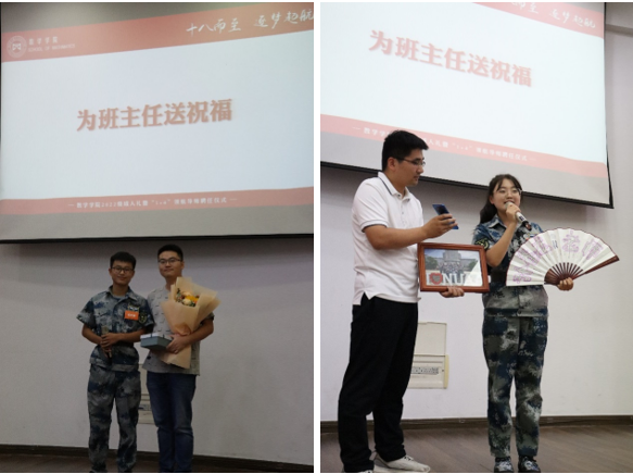各班同学也为班主任们送上了暖心祝福。0822101班的同学们为班主任送上了一份满含祝福的日历,寓意共同走过每一天,日历上的每一个节假日中,都有一位班级同学的祝福;每一个节日上都提前写上了节日祝福。0822102班的同学为班主任准备了班级的第一张合影,并用班级全体同学的名字组成老师名字“孙春龙老师”写于扇子上赠与班主任,表达勇于与老师同在。0822401班每位同学都为班主任写了一张明信片,并装订成册,放在精心制作的礼盒里,时时陪伴老师。同学们的礼物深深打动了班主任们。班主任们殷切为同学们寄语,鼓励同学们珍惜大学时光,把握成长机会,在21点 努力成长。