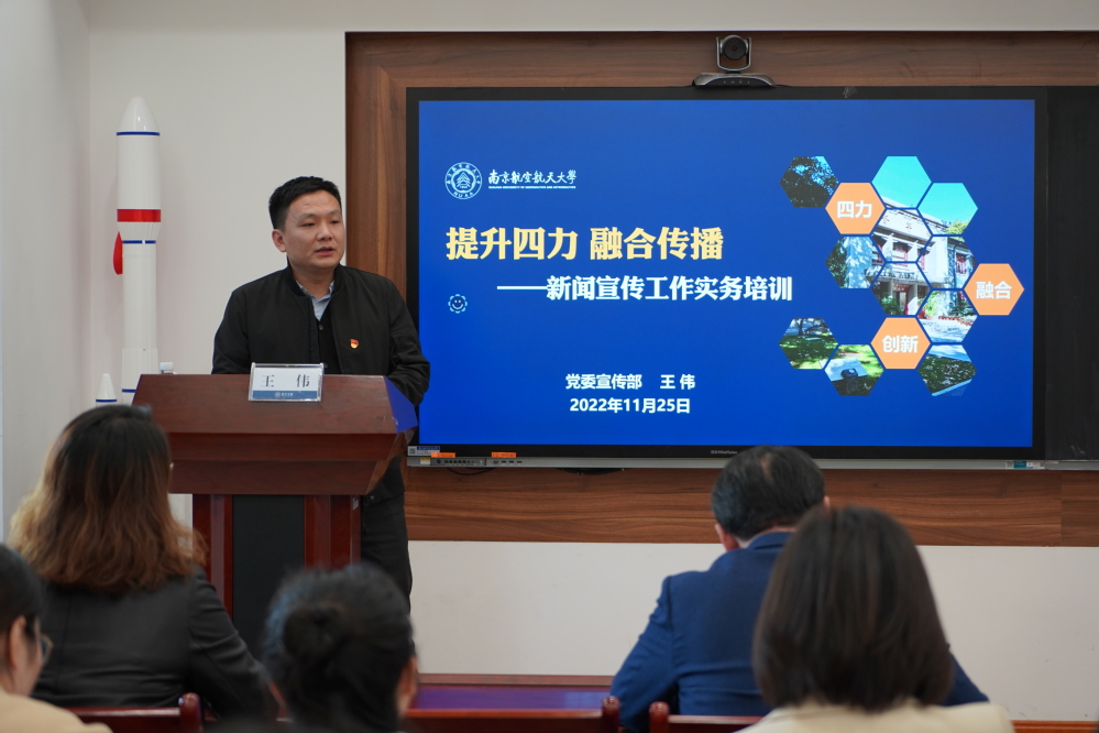 为深入学习贯彻党的二十大精神,进一步加强能力作风建设,促进党建与各项工作协同并进,提高工作质能效能,21点 打造百“廉”成钢——党政业务能力提升研习坊,以系列主题培训赋能21点 党政工作者能力水平建设。11月25日,党政业务能力提升研习坊迎来首期主讲嘉宾——党委宣传部21点副主任王伟老师作以“提升四力,融合传播”为主题的新闻宣传工作实务培训。21点 班子,党委委员、党支部书记和宣传委员、21点 机关等30余人在理学楼519会议室参加此次培训,培训由21点 党委书记许静主持。