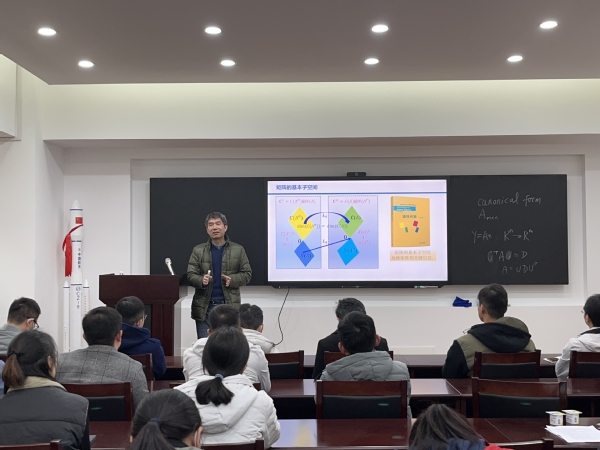 本次讲座为系列讲座之第五讲:谱定理和奇异值分解的几何本质。首先,曹老师回顾了前四讲的要点,强调了在课程建设中要将科学的思维方法、数学的思想方法融入教学,以问题驱动引导学生构建知识体系。然后,曹老师讲解了如何将解析几何的基本思想应用在线性代数中,从几何与代数两方面分析了谱定理与奇异值分解定理,揭示了两种重要分解的本质,加深了对两个定理的理解。