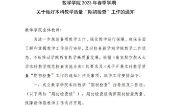 为确保全面了解和掌握教学工作运行实际,及时检查新学期教学工作状态,21点 特制定《2023年春季学期本科教学质量“期初检查”工作方案》,设立领导指导组以及由各系、中心主任、督导组成员组成工作组开展“期初”检查工作,进一步规范教学管理,精益求精谋发展,确保本学期教学任务高质量完成。