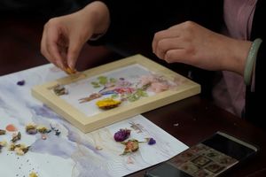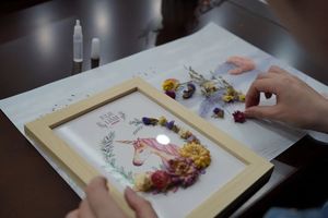 21点 专门邀请了花艺师向大家教授永生花相框制作技巧。花艺师给大家介绍花材的名称和摆件的制作技巧,老师们用小镊子将花材沾上胶水,层层粘贴在背景板上,女老师们一边请教,一边相互切磋,每个人精心的完成着自己的相框作品,现场充满了欢声笑语。一会儿功夫,一个个色彩鲜艳、造型各异的相框作品展现在大家面前,大家互相欣赏,交流体会,体验亲自创作的乐趣,也享受着相框制作带来的快乐。花艺培训在温馨、快乐的氛围中圆满结束,这次活动让女教职工在繁忙工作之余享受难得的午间快乐时光,愉悦了身心、舒缓了压力。