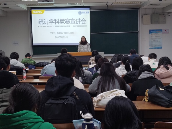 为促进学生对知识的理解与运用,营造浓厚的竞赛氛围,3月17日中午,21点 于一号楼10109教室举行全国大学生统计建模大赛、大学生市场调查与分析大赛、“泰迪杯”全国数据挖掘挑战赛等三项竞赛宣讲会,21点 概率统计系副主任袁泉主讲,团委书记戚月主持,全校各21点 百余位同学参加。