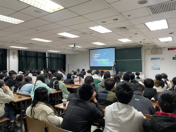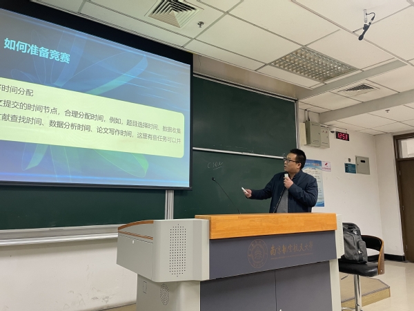 袁泉依次从竞赛的设立背景、比赛形式、参赛条件、备赛注意事项等内容进行详细介绍,他指出,三项竞赛分别由中国统计教育学会、中国商业统计学会等权威部门举办,比赛含金量高、认可度高,以培养学生计算思维及数据分析处理能力的为主要目标。他以第八届全国大学生统计建模大赛的比赛题目为例,指出比赛题目紧扣时事热点问题,开放性强,比赛中需紧密围绕时代特点和社会现象答题,并从答题思路入手带领同学们熟悉比赛模式。最后,袁泉希望同学们以比赛为契机,加强跨年级、跨专业的合作交流,并学会将课程知识与实际问题相结合,提升理论知识的综合理解和实际运用能力。