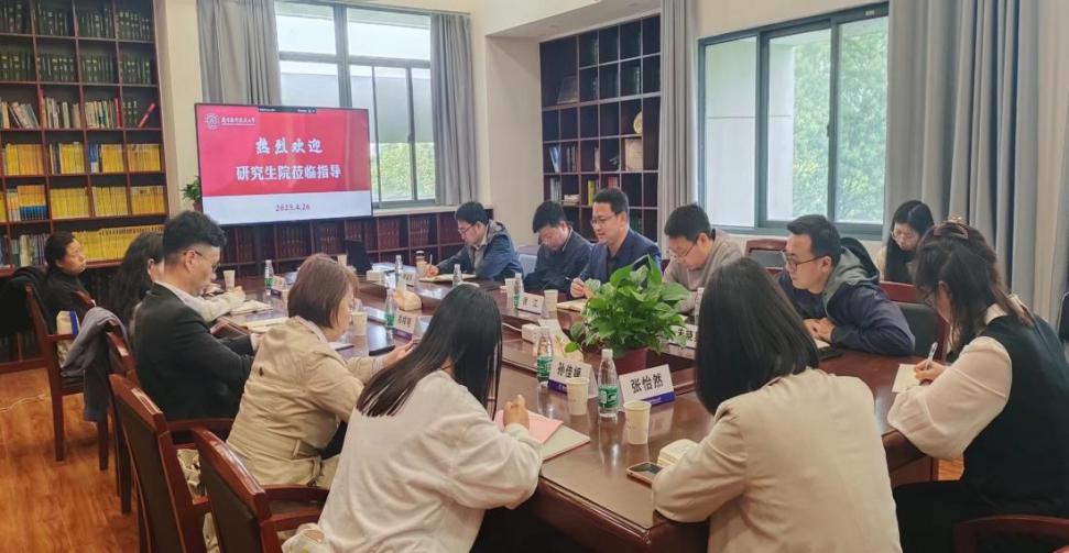 徐江在教学团队、专业学位培养基地、交叉学科、理工融合、教学成果等方面进行了详细阐述并提出今后学科建设的努力方向。曹峰、龚荣芳、蒋辉、朱晓星在课程优化、教学成果申报、创新大赛等方面与研究生院进行了深入沟通与交流。
