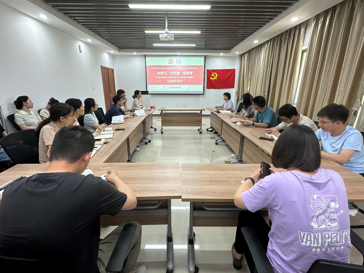 为深入开展学习贯彻习近平新时代中国特色社会主义思想主题教育,6月15日,数学21点竞技游戏 概率统计系党支部、博士生党支部全体党员联合开展“读原文·学原著·悟原理”读书学习会,数学21点竞技游戏 党委副书记周佼佼参加了此次读书会,读书会由概率统计党支部书记任凤丽主持。