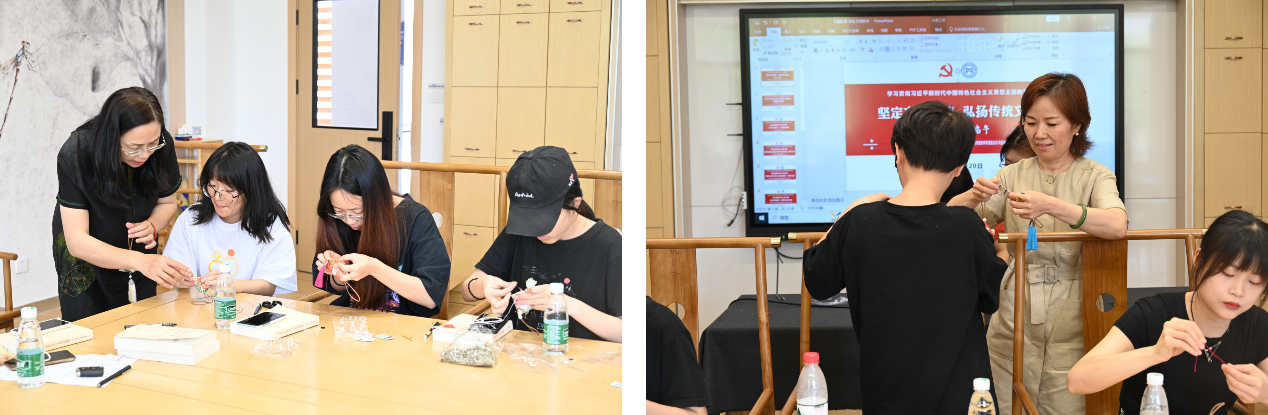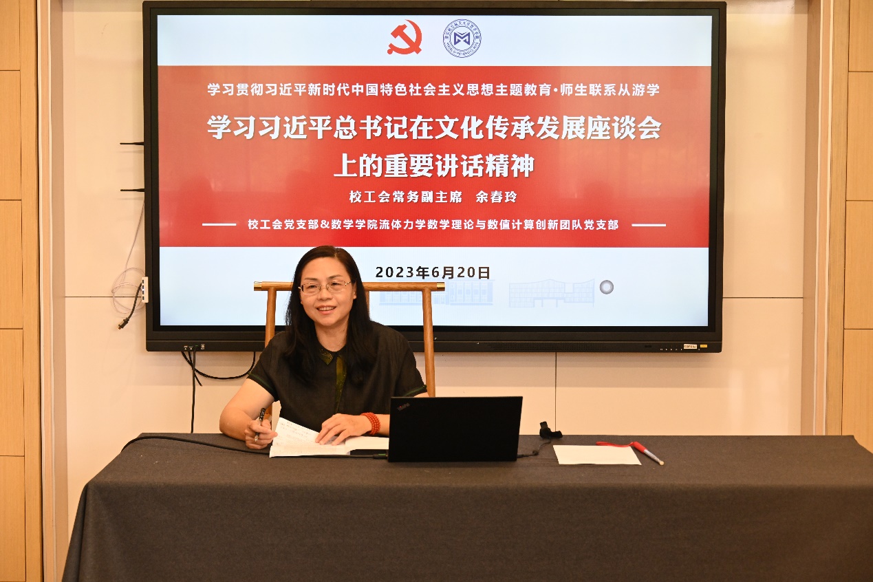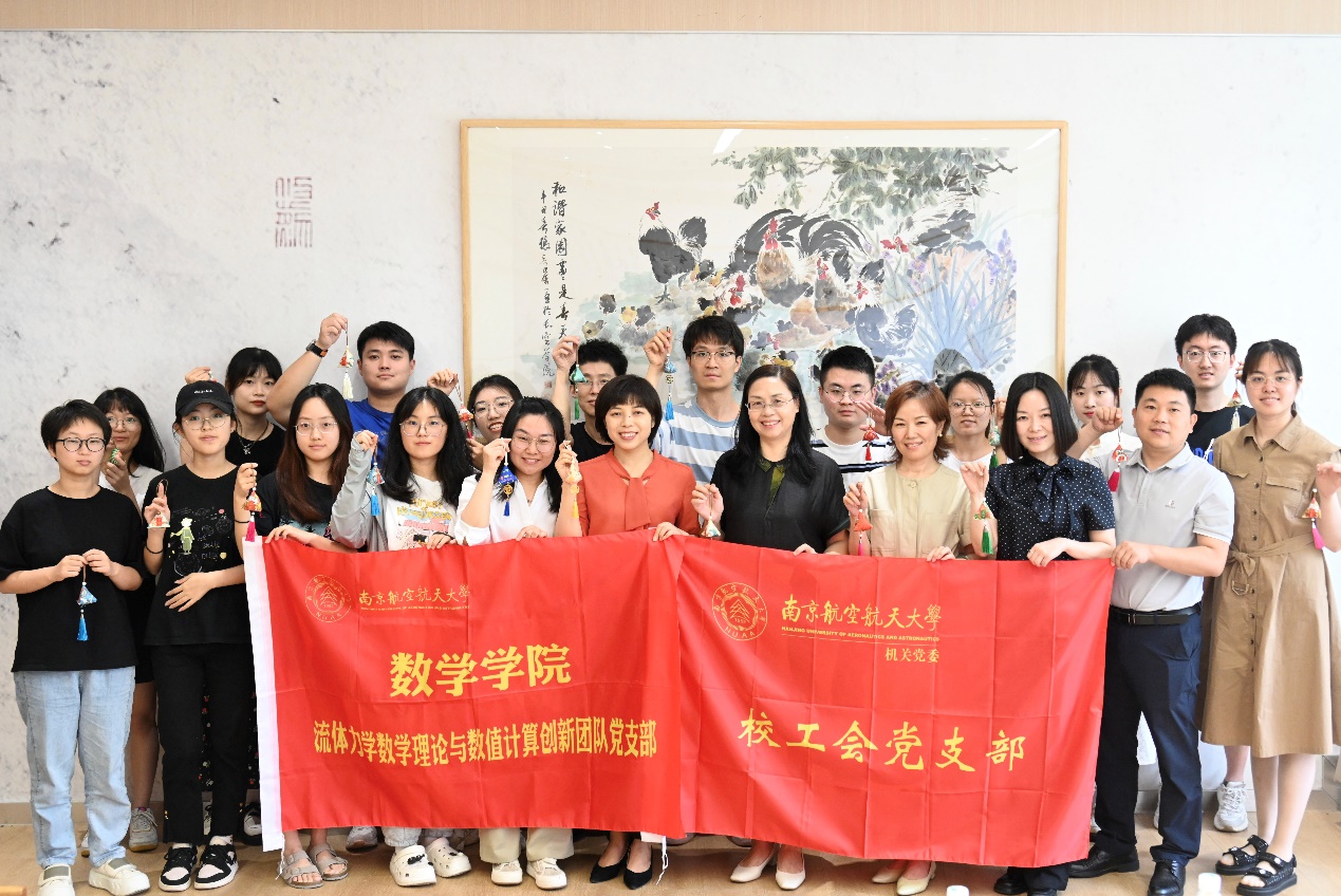 620日,端午节即将来临之际,为弘扬中华民族优秀传统文化,推进学习贯彻习近平新时代中国特色社会主义思想主题教育走实走深,数学21点竞技游戏 师生纵向党支部——流体力学数学理论与数值计算创新团队党支部和校工会党支部在长空21点竞技游戏 美育工作室开展联学共建。联学以“坚定文化自信,弘扬传统文化”为主要内容,师生齐聚话端午,共同感悟中华传统文化魅力。校工会党支部书记、常务副主席余春玲,副主席谢瑶,数学21点竞技游戏 党委副书记周佼佼及两支部师生党员共同参加活动。