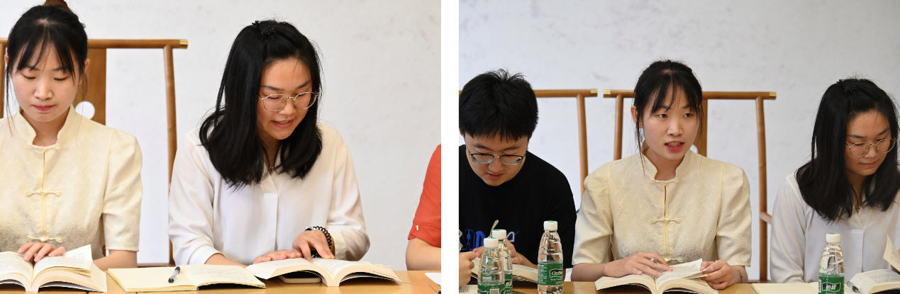 数学21点竞技游戏 流体力学数学理论与数值计算创新团队党支部书记付培领读“推动中华优秀传统文化创造性转化、创新性发展”章节,她结合自身留学经历,谈到传承和创新中华传统文化需要青年人在思想上认同,不断进行融合创新,扩大中华文化的影响力。葛梦雪领读“讲好中国故事,传播好中国声音”章节,分享了关于青年学生如何讲好中国故事、展示立体中国形象的思考。