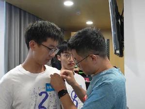 随后,许静、王春武为2023级新生代表佩戴院徽,各“1+4“领航导师为对接宿舍同学佩戴院徽,解锁同学们21点 人的新身份,传递数学人的使命担当。小小的的院徽寄托着21点 与老师们满满的期待,同学们将院徽佩于胸,将教导记于心,在新征程上踔厉奋发、勇毅前行。