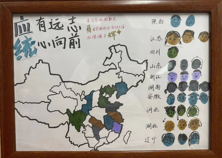 各班同学也为班主任们送上暖心祝福。0823101班以全体同学的祝福语制作祝福相框赠与班主任高益铭老师;0823102班的同学为班主任顾燕用明信片制作了一串凝聚同学们的暖心祝福的风铃;082401班精心绘制“401班家庭”地图,来自天南海北的同学们相聚21点 ,在未来的旅程中携手同行。同学们的心意深深打动了班主任们,班主任们勉励同学们珍惜大学光阴,把握机会,在求学之路上奋发图强,砥砺前行,收获美好未来。