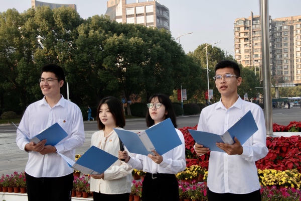 为加强爱国主义教育,激发21点 学子的爱国热情,10月30日,21点 在将军路校区国旗广场举行“追数学之梦,绽团结之花,践报国之行”主题升旗仪式。21点 党委副书记周佼佼、全体辅导员、本科生、预科生、硕博新生、学生党员参加了本次升旗仪式,仪式由2023级少数民族预科生那奇凡主持。