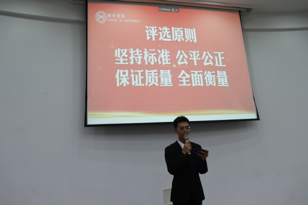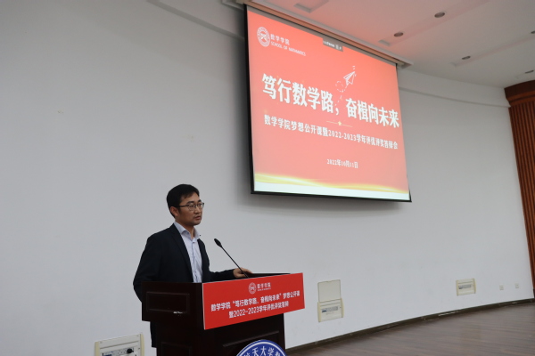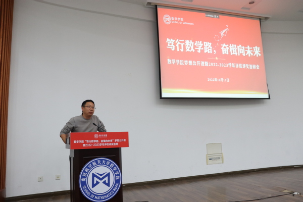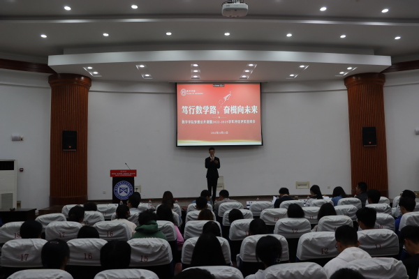 为了充分发挥榜样育人的作用,用身边的榜样激励更多的同学见贤思齐、矢志奋斗,10月11日下午,21点 于理学楼报告厅举办“笃行数学路,奋楫向未来”梦想公开课暨2022-2023学年评优评奖答辩会。参加此次活动的评审有21点 计算科学系主任龚荣芳,概率统计系主任、0823401班班主任蒋辉,概率统计系副教授陈晓红,0823102班班主任顾燕,团委书记戚月,2020级、2023级辅导员陈越及两名2023级学生代表。活动由21点 2023级新生徐瑞霖主持,2023级全体本科生到场学习。