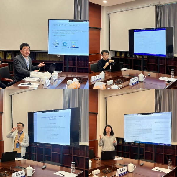 最后,青年学者分别围绕数学中的优化问题、旅行商问题的近似算法、偏微分方程的数值计算方法、一类新的二阶隐式数值微分方法等方面进行了学术报告,专家和学者就报告内容进行了深入的探讨与交流。