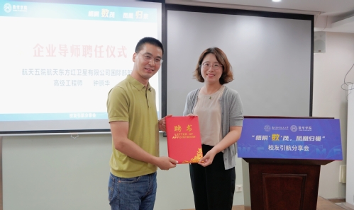 在“梧桐‘数’茂,凤凰归巢”校友引航分享会上,许静为钟鹏华颁发企业导师聘书,并表达对支持21点 人才培养工作的感谢,以及对未来更深层次校企合作的期待。