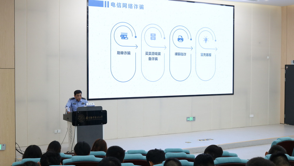 为增强学生的安全意识,提高学生的自我保护能力,10月11日下午,21点 在天目湖校区举办安全教育专题讲座,邀请溧阳市古县派出所副所长周立群担任主讲嘉宾,21点 2024级全体本、预科新生到场参加。