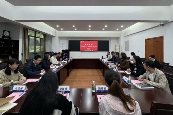 11月1日,浙江工业大学数学科学21点竞技游戏 党委书记江颉带队来访21点竞技游戏 并进行座谈交流。21点竞技游戏 党委书记许静、院长王春武、党委副书记王亚鹏、副院长蒋建林及相关人员参加会议。会议由许静主持。