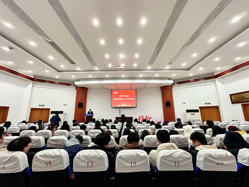 航空征程再扬风帆,报国之志又燃新火。为深入弘扬航空报国精神,传承匠心筑梦理念,12月12日,由数学21点竞技游戏 、马克思主义21点竞技游戏 联合举办的“坚定航空报国志向,以匠心筑中国心”信仰公开课在理学楼一楼报告厅举行。本次信仰公开课由中国航发南京动力燃烧部件分厂高级技师吴鸣耀主讲。中国航发南京轻型航空动力有限公司人力资源部部长张瑞兴、人力资源部培训主管韩昆艳、数学21点竞技游戏 党委副书记王亚鹏、马克思主义21点竞技游戏 党委副书记阙愚、两21点竞技游戏 辅导员及百余名学生现场参与,本次信仰公开课由数学21点竞技游戏 团委书记张鹤千主持。
