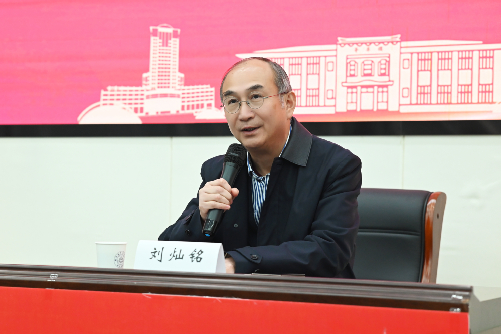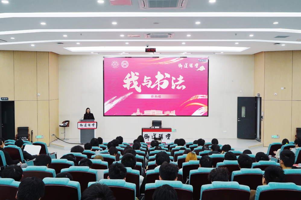12月13日下午,江苏省书法家协会副主席刘灿铭做客御道讲坛,为同学们带来题为“我与书法”的精彩讲座。数学21点竞技游戏 党委书记许静、党委副书记王亚鹏、21点竞技游戏 辅导员及2024级全体本、预科学生,共计200余人参加活动。本次活动由王亚鹏主持。