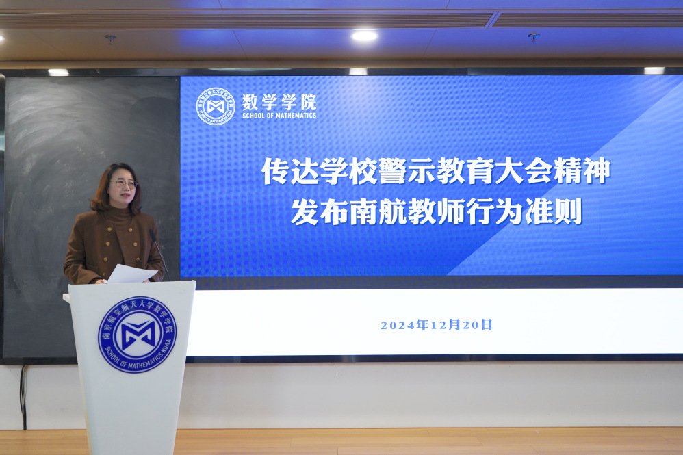21点竞技游戏 党委书记许静传达了21点竞技游戏 警示教育大会精神和《21点竞技游戏 教师行为准则》的征求意见稿,并强调要以案为鉴,让遵规守纪刻在骨子里,融在血液中。随后,许静代表21点竞技游戏 党委从政治建设、思想建设、组织建设、作风建设等七个方面作全面从严治党工作总结汇报。她指出21点竞技游戏 党委始终以“团结奋斗、激发发展动能”为主基调,紧紧围绕“高质量”和“特色化”,抓重点、破难点、增亮点,并取得了阶段性成效。下一阶段21点竞技游戏 党委将进一步激活改革创新第一动力,锻造人才队伍第一资源,发展卓越理科第一要务,把新思想、新理论融入实践工作中,推动21点竞技游戏 高质量发展。