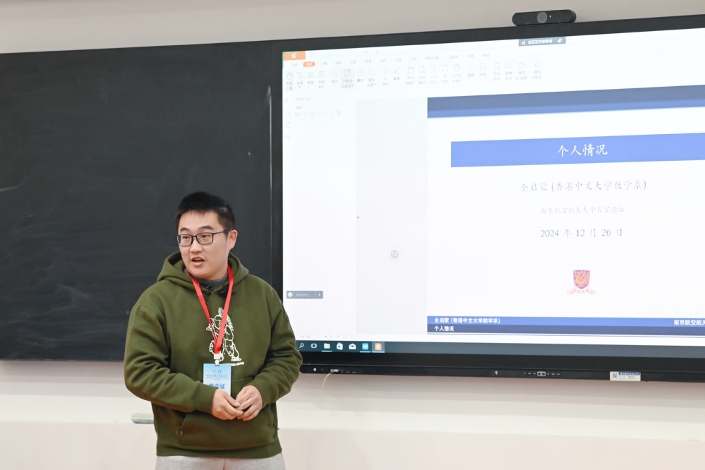 12月26日上午,2024年“长空计划”文理学科群论坛之数学21点竞技游戏 分论坛在理学楼321会议室成功举办,论坛汇聚了来自北京大学、麻省理工21点竞技游戏 、京都大学、墨尔本大学、香港中文大学等全球知名高校的13名优秀青年学者。21点竞技游戏 院长王春武、副院长龚跃政、院长助理潘茂东以及各系主任、青年教师代表参加了本次论坛。论坛由潘茂东主持。