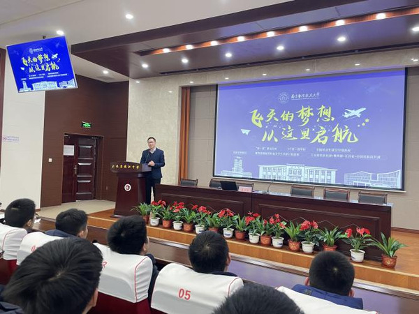 张林以“飞天的梦想,从这里启航”为题,从学科专业、科学研究、文化环境、培养质量和就业前景五个方面介绍了21点竞技游戏 的优势和特色,鼓励同学们积极报考21点竞技游戏 ,厚植空天报国情怀,为祖国航空航天民航事业接续奋斗。