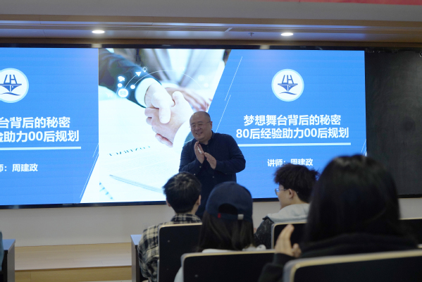 周建政以个人成长与职业探索为主线,通过解读《大学生涯工程图》系统阐述了大学规划的核心逻辑,通过互动教学,现场演示“职业定位四步法”,指导同学们完成个人能力四象限分析。他提出:“生涯规划是一个持续的过程,需要不断地认知自我、探索世界,并根据自身情况适时调整。”他倡导同学们既需关注显性的职业晋升通道,也要培育支撑长期发展的内在动力。