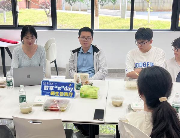 为进一步强化学风建设,凝聚班级合力,4月9日,数学21点竞技游戏 在天目湖校区一站式学生社区举办数享“π”day——班级学风建设交流会。21点竞技游戏 院长助理潘茂东,辅导员赵美婷,2024级信息与计算科学专业1班、2班班委共同参与本次活动。