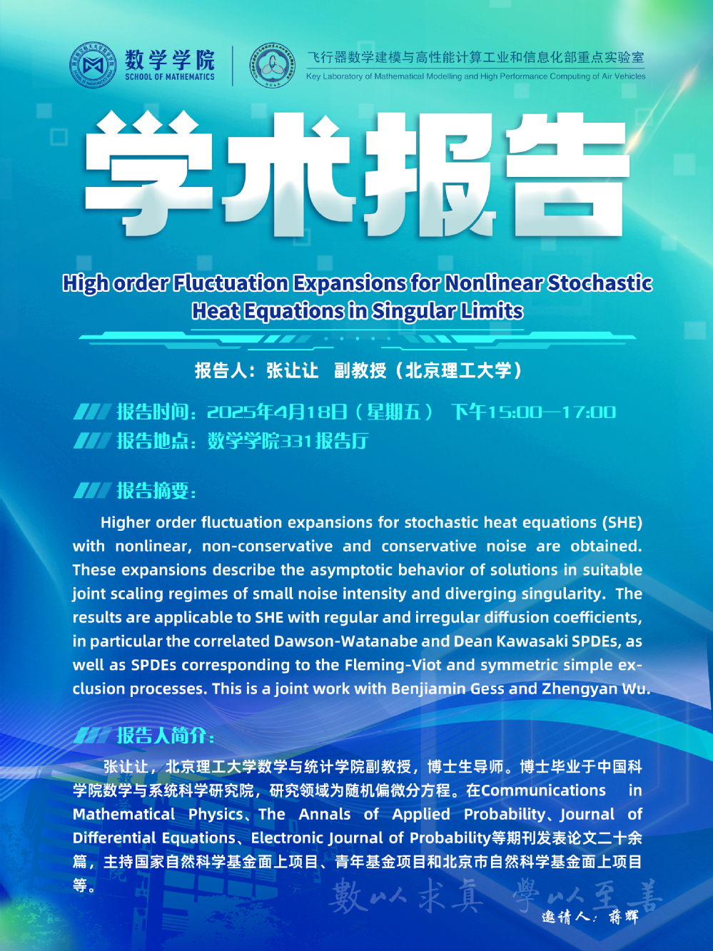 【学术讲座4.18 张让让 北京理工大学】