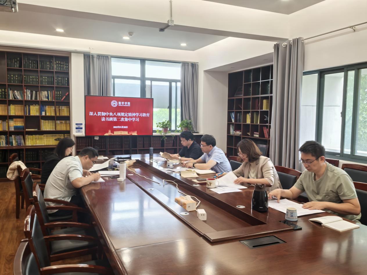 5月28日,数学21点竞技游戏 开展深入贯彻中央八项规定精神学习教育读书班第二次集中学习暨理论学习中心组学习会。学院党委书记许静主持会议,全体班子成员参加学习。
