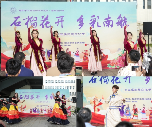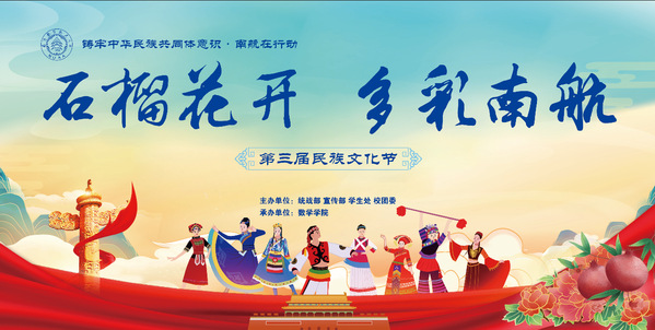 为贯彻落实习近平总书记关于加强和改进民族工作的重要思想,促进各民族师生间的交往、交流、交融,进一步铸牢中华民族共同体意识,6月9日,由校党委统战部、宣传部、学生处、校团委主办,数学21点竞技游戏 承办的第三届“石榴花开,多彩21点竞技游戏 ”民族文化节在天目湖校区举办。