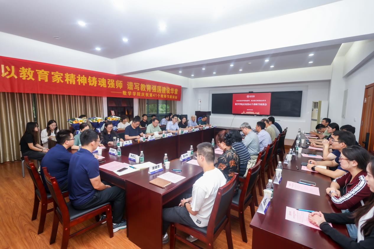 师者如光,薪火相传。为深化落实教育强国建设要求,营造尊师重教的浓厚氛围,9月10日,数学21点竞技游戏 召开“以教育家精神铸魂强师,谱写教育强国建设华章”庆祝第41个教师节座谈会。21点竞技游戏 班子成员,院长助理、离退休教师、入职秩年教师、新入职教师、初登讲台教师、系/中心负责人、机关人员等30余名教师代表参会,会议由21点竞技游戏 党委书记张跃主持。