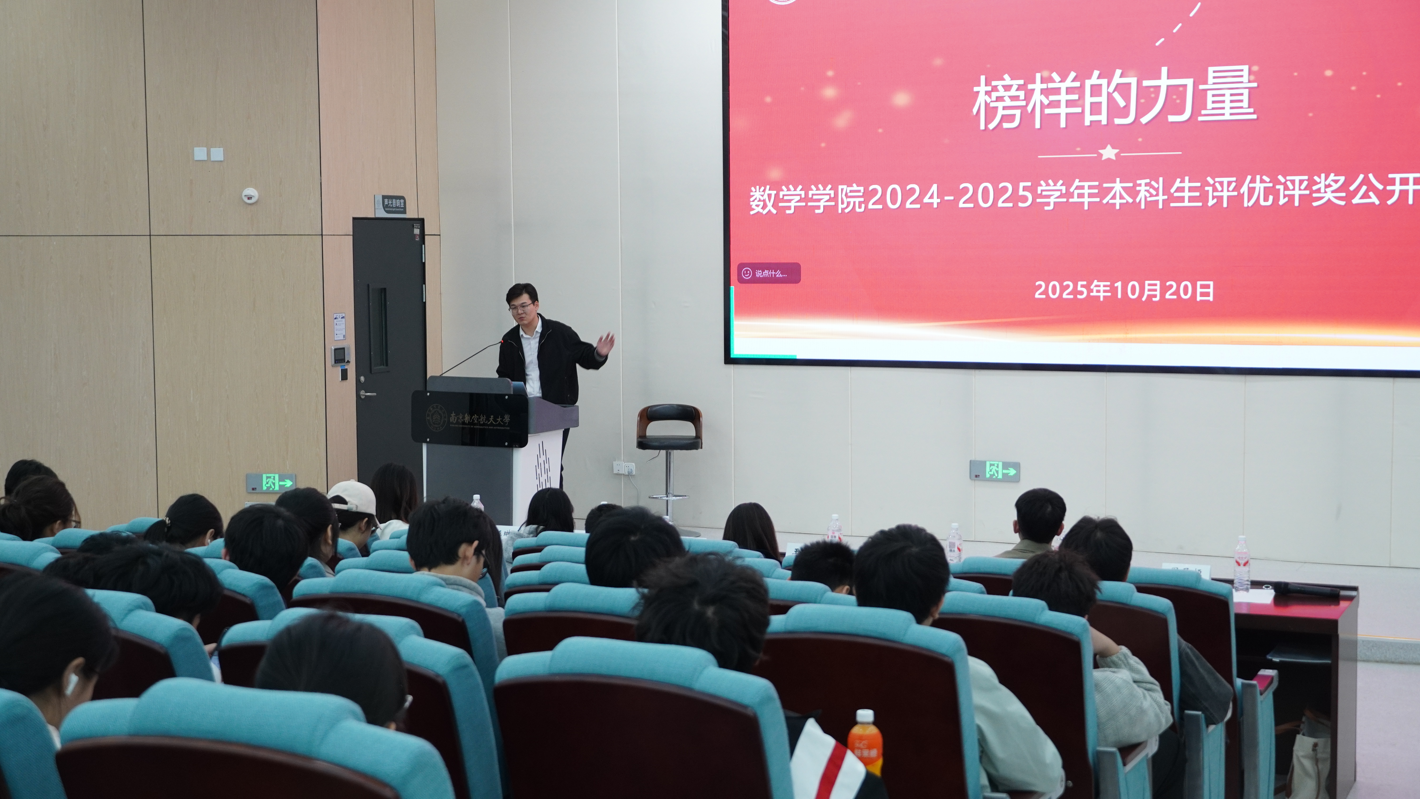 10月20日,数学21点竞技游戏 在天目湖校区T2110报告厅举办“榜样的力量”2024-2025学年本科生评优评奖公开答辩会。21点竞技游戏 党委副书记王亚鹏,院长助理、概率统计系主任蒋辉,计算科学系副主任尹晨,教师袁玉环,数学系教师姬杰,本科生辅导员刘思佳、伍琳玲、周子恒一同参会。答辩会由周子恒主持,2024级本科生到场观摩学习。