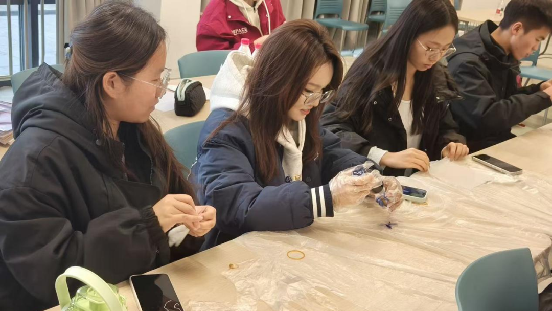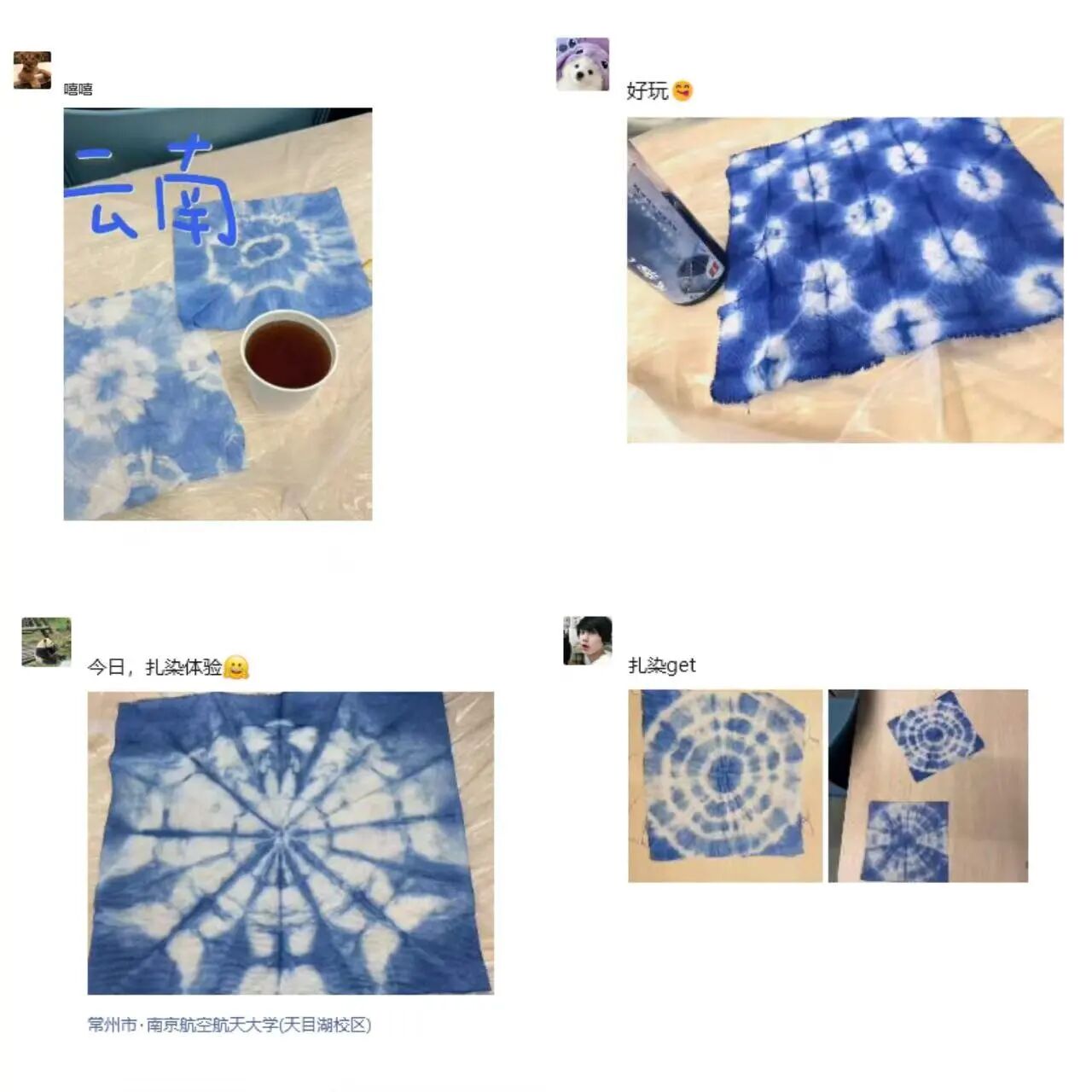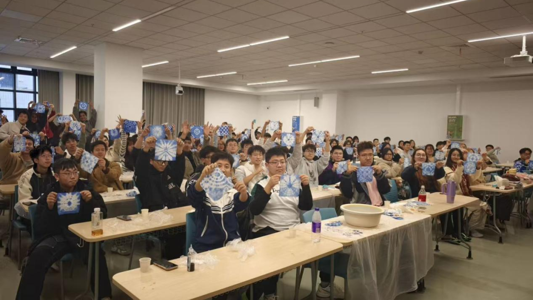 活动尾声,同学们纷纷展示亲手制作的扎染作品,分享参与感悟:“这是我第一次体验扎染,看着素白方巾渐渐晕染出靛蓝纹样,带来了满满的成就感!”不少同学还在朋友圈晒出作品与心得,大家一致认为,这场 “红石榴・微讲堂” 既有文化学习的深度,又有动手实践的乐趣,更饱含情感联结的温度,让各族同学在轻松愉悦的氛围中增进了彼此了解,加深了深厚情谊。