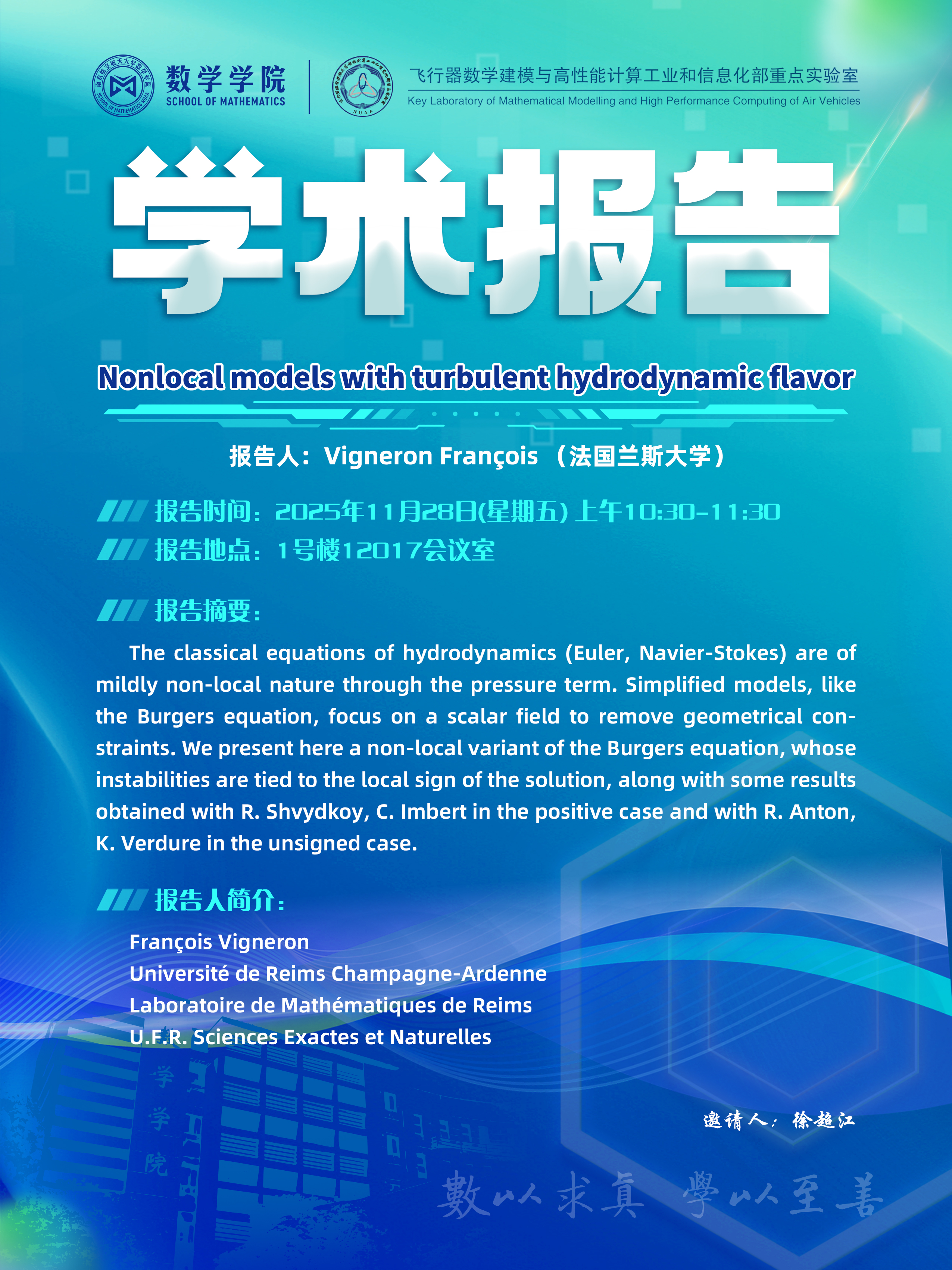 【学术讲座11.28 Vigneron François 法国兰斯大学】