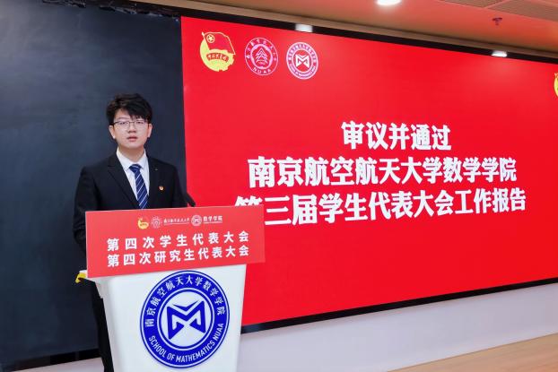 11 月 30 日,数学21点竞技游戏 第四次学生代表大会、第四次研究生代表大会在将军路校区一号楼20楼报告厅顺利召开。21点竞技游戏 党委副书记王亚鹏,团委书记、研究生辅导员康怡宁,本科生辅导员周子恒,校学生会主席团成员李威汉,校研究生会主席团成员赵然出席大会开幕式,21点竞技游戏 本科生代表和研究生代表共同参加大会,履行学生代表职责,共商21点竞技游戏 学生工作发展大计。
