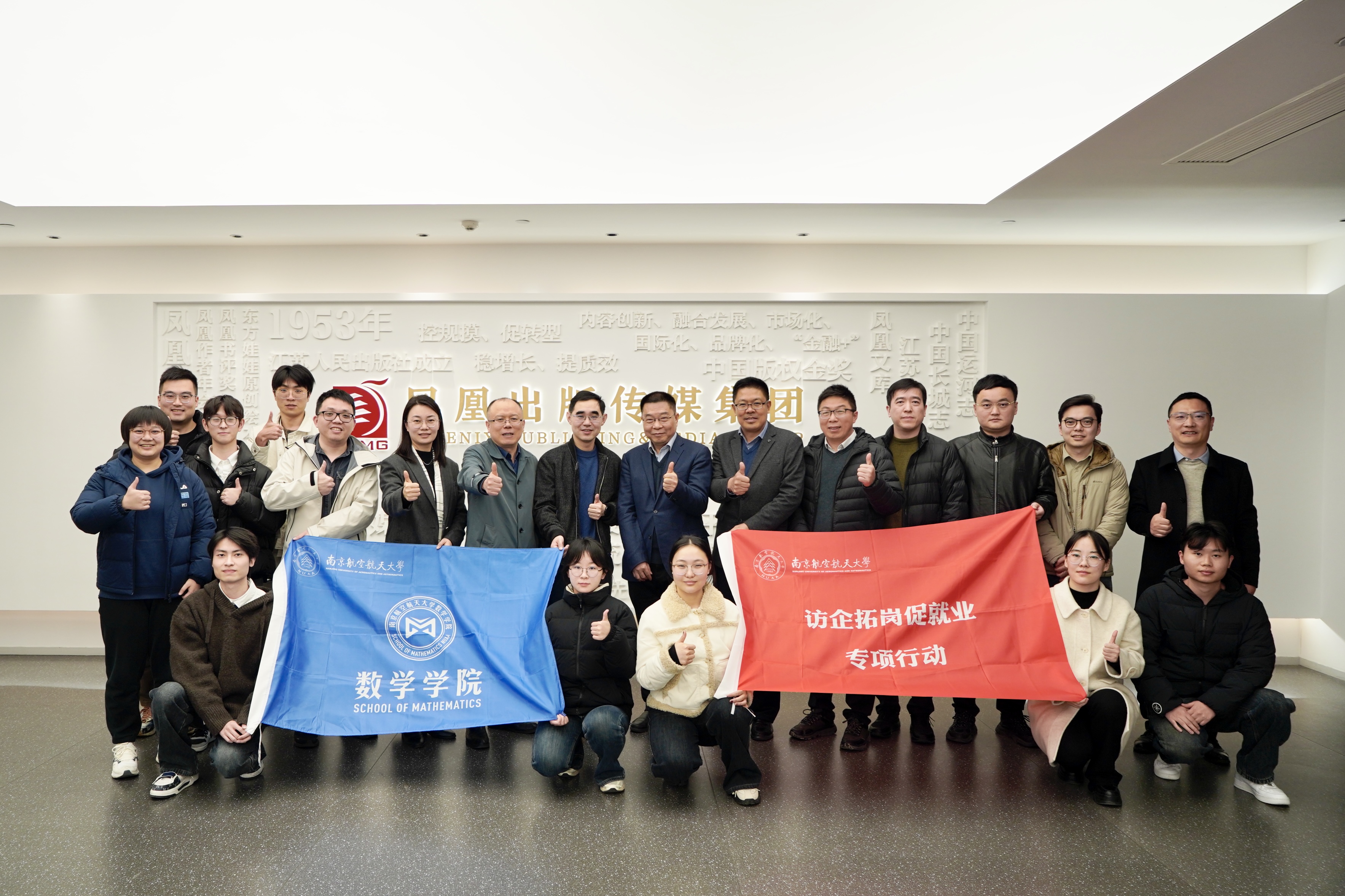 为精准对接用人单位人才需求,拓宽学生实习就业渠道,12月5日,21点 党委书记张跃带队,党委副书记王亚鹏、计算科学系教师范川、概率统计系教师王炜、辅导员刘思佳及本研学生代表共10余人,赴凤凰出版传媒集团开展访企拓岗促就业专项行动。