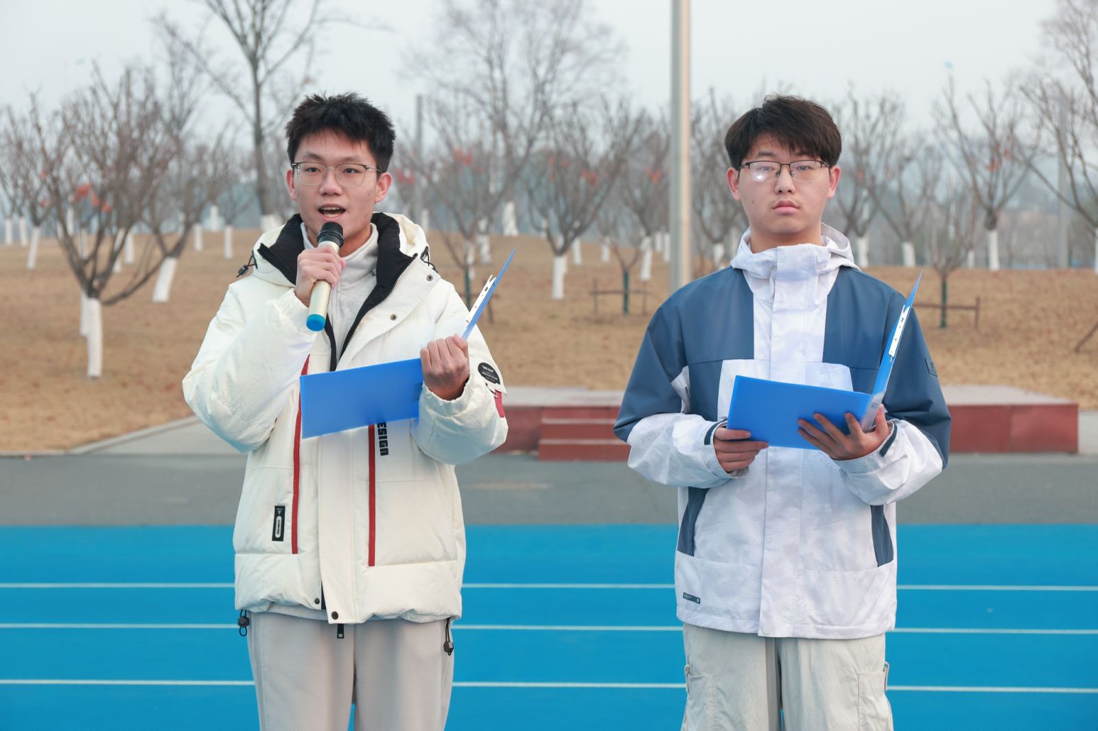 2024级孟容羽、魏鸿两位同学带来诗朗诵《薪火永相传,共筑强国梦》,激昂的语调、真挚的情感,既赞颂了矢志不渝的奋斗精神,也表达了对一代代追光者的崇敬之情,引发在场师生强烈共鸣。
