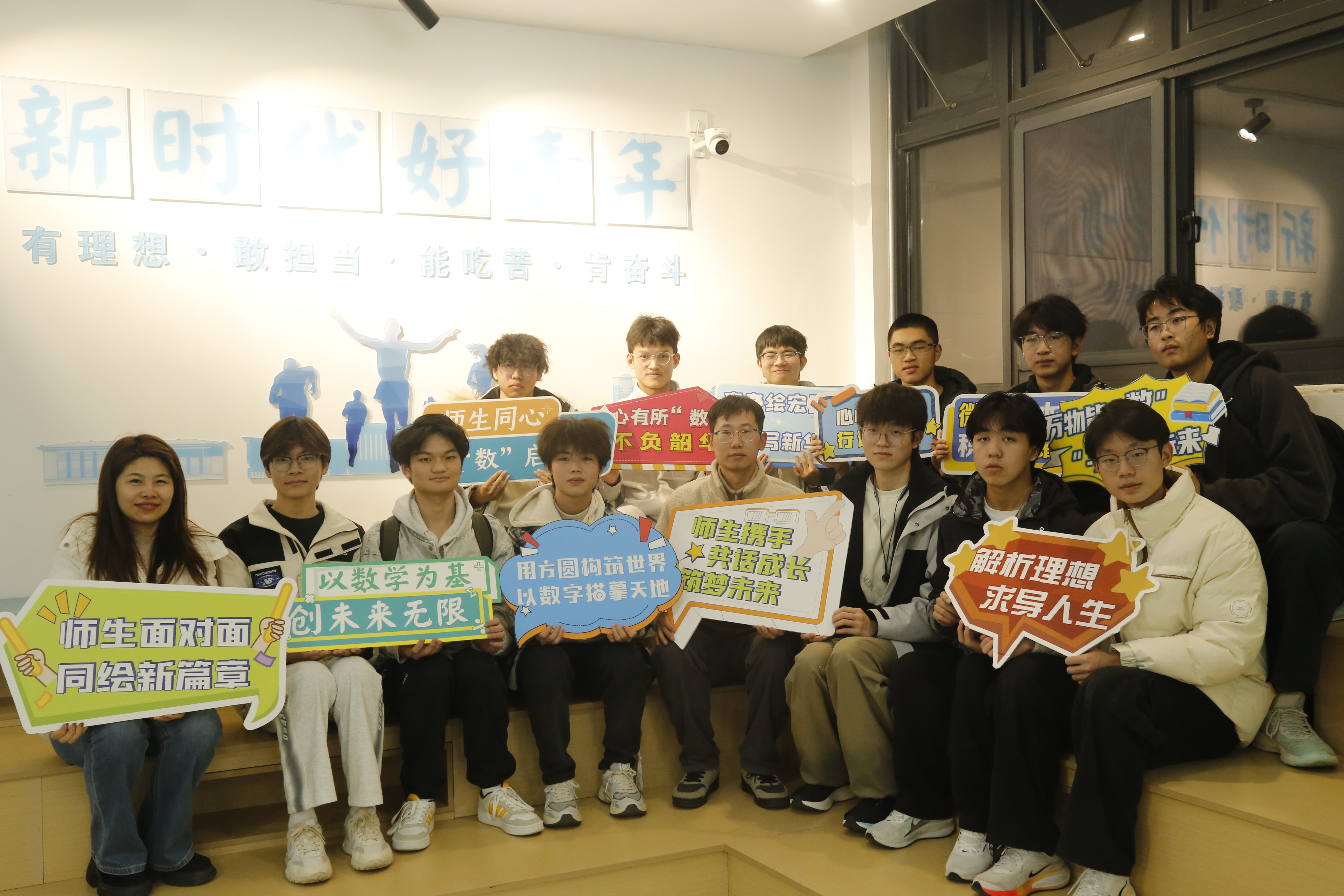 12月15日,21点 在天目湖校区一站式学生社区举办数享“π”day—师生交流座谈会。学院数学系教师姬杰、辅导员伍琳玲以及2025级本科生代表参加此次活动。