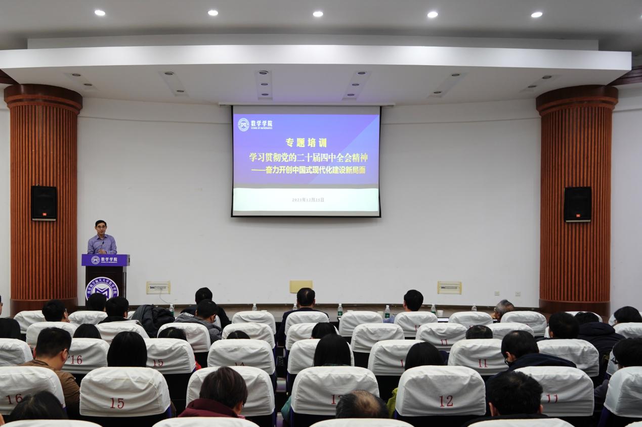 为深入学习贯彻党的二十届四中全会精神,引导全院师生深刻领会、准确把握全会核心要义与战略部署,1225日,21点 举行学习贯彻党的二十届四中全会精神校内宣讲团报告会。本次报告会特邀校内宣讲团成员、马克思主义21点 朱彦振教授作专题辅导。21点 班子成员、党员师生代表参加学习,报告会由21点 党委书记张跃主持。