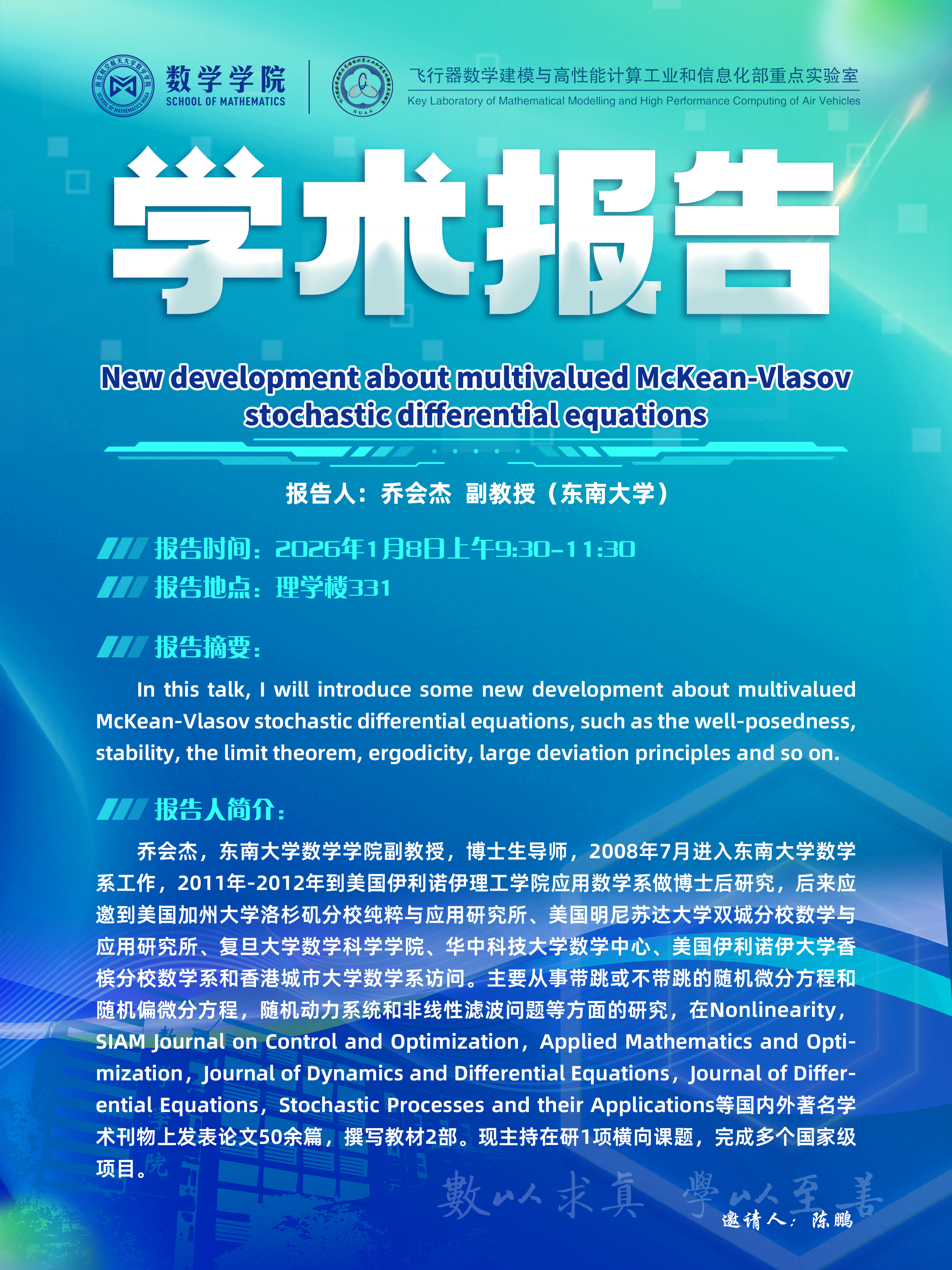 【学术讲座1.8 乔会杰 东南大学】